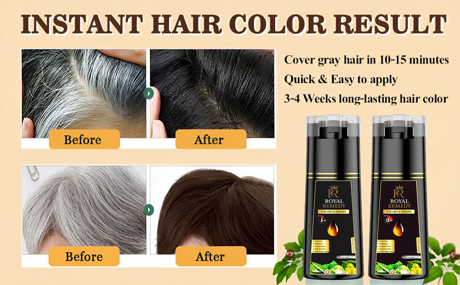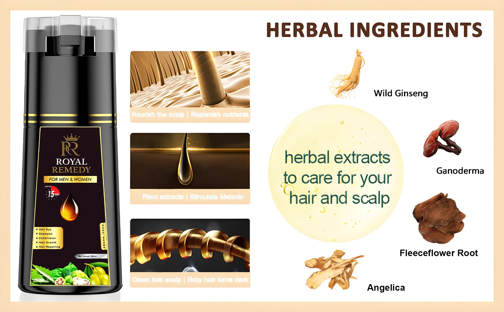 Royal Remedy Hair Color Shampoo is crafted with a premium UK-based formula and enriched with powerful herbal ingredients like ginseng, radix linderae, and keratin oil πΏ.